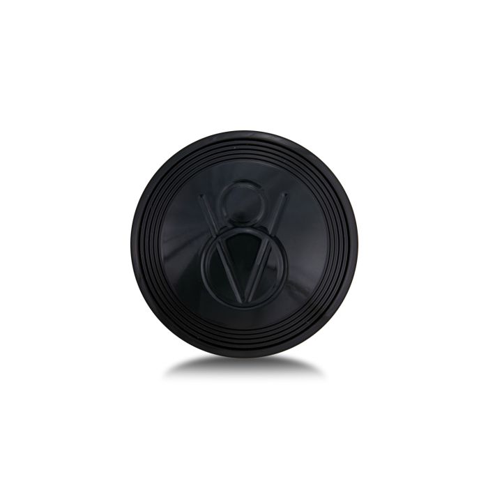 Gloss black aluminum horn button Dome shape with engraved V-8 logo Fits Mark 40 steering wheels Single contact electrical connection Made in USA