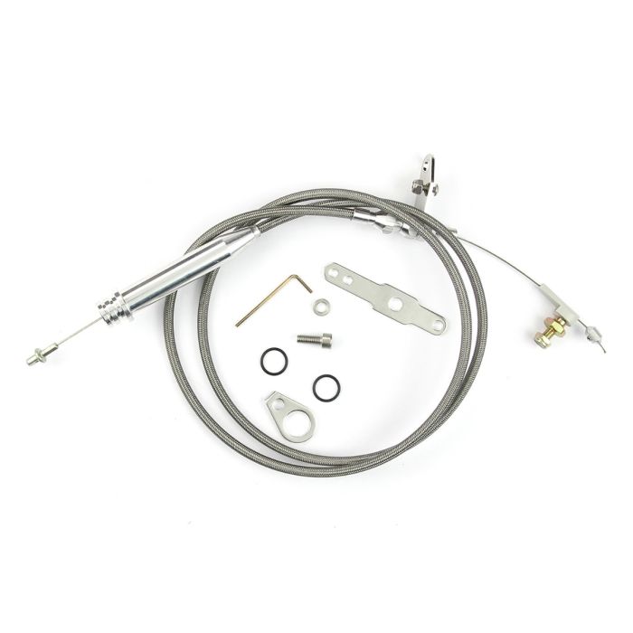 Our kickdown cables are designed for durability and versatility, featuring a Teflon-lined housing for extended cable life and a stainless steel inner wire that’s U-Cut-To-Fit for a precise installation. Available in braided stainless steel, black braided stainless steel, or a universal black housing, they adapt seamlessly to tunnel ram, blower manifolds, and Weber induction systems. Built with aluminum fittings and ferrules to prevent fraying, our polished throttle cables come with polished aluminum fittings, while the Hi-Tech Black Stainless Cables feature black anodized aluminum fittings for a sleek finish.