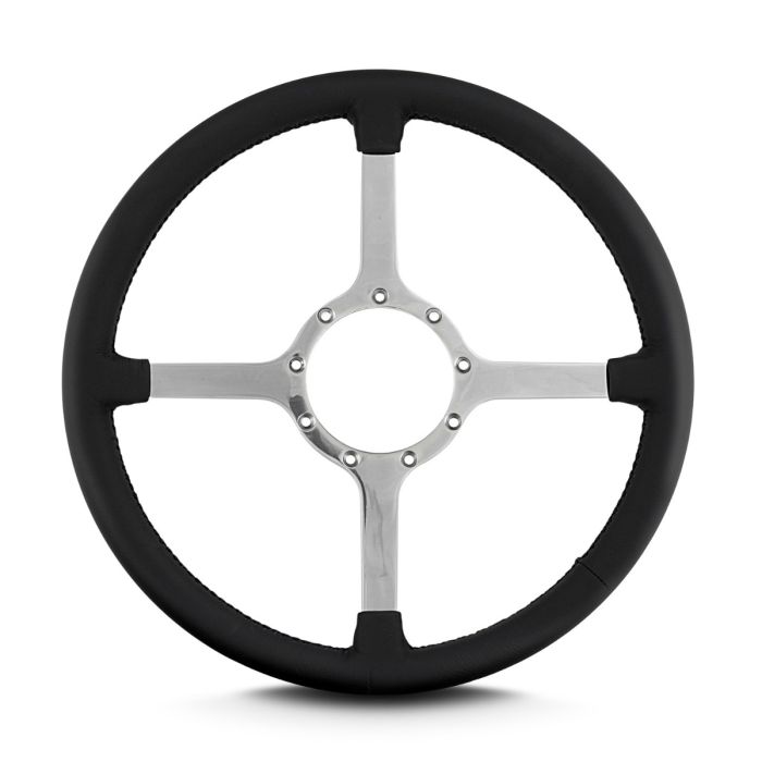 The Mark 4 Classic is a 15 inch diameter, 4 spoke wheel featuring an aluminum center which is available only in a polished finish. It also features solid spokes and has a 1.125 inch diameter grip hand-stitched from your choice of 12 different leather colors. The Mark 4 Classic will accept any of our 9-bolt large or small horn buttons (excluding the Banjo and Vette buttons) which are sold separately. Hub adapters are required and are also sold separately.