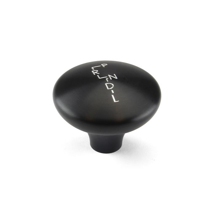 Black anodized aluminum shifter knob. GM 2 speed shift pattern 2" diameter x 1.6" tall Lifetime Warranty Made in the USA