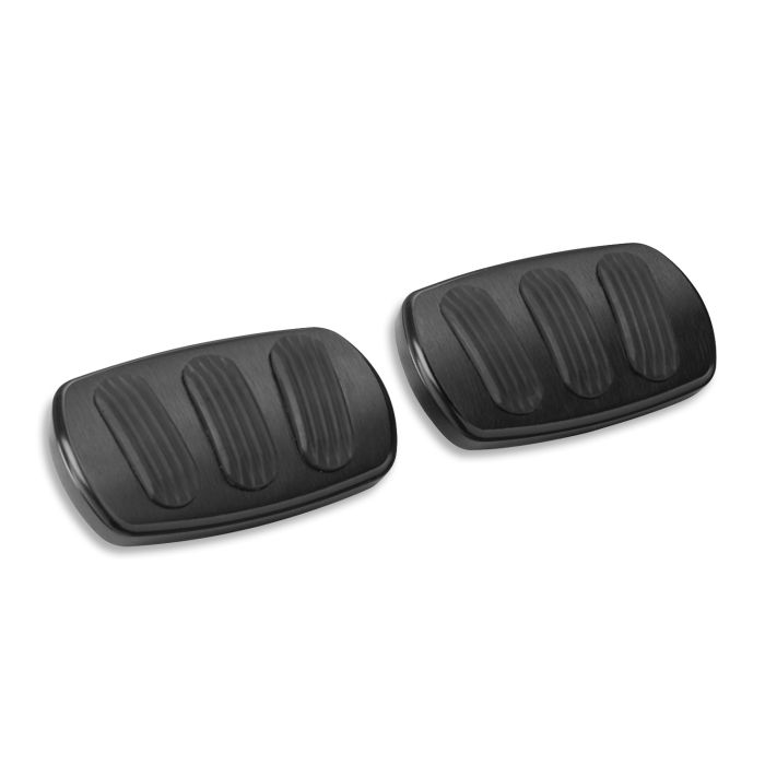 CURVED BLACK BRAKE/CLUTCH PEDAL PADS FOR '55-'57 CHEVY WITH RUBBER INSERT PAIR